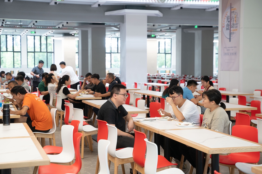 在該棟宿舍樓下,還設有食堂、超市、健身房等生活配套。中午時分,陸續(xù)有教職工在此排隊就餐。記者在現場看到,粵菜、川菜、湘菜等多種風味特色的窗口設立在食堂兩側,中間排列整齊的座位可供約2000位師生同時就餐。該校區(qū)還將陸續(xù)建設第二、第三食堂,為師生提供更加便捷、可口、多樣化的就餐選擇。