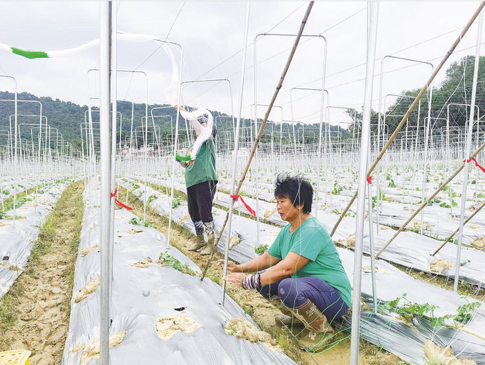 該項目相關負責人李嘉銘說,在連片流轉土地后,他們對土壤進行了相應改良,按照規劃種上各類瓜果。目前,這里已收獲了一季瓜果。望著曾經撂荒的土地收獲滿滿,村民心里都樂呵呵的。供銷農場閑時一般需要村里20個勞動力,忙碌時需要40個甚至更多,村民因此有了工作崗位,也有了一份新收入。車阿姨就是其中一個。“年紀大了,在外面也不好找工作。”她說,在這里勞作,每天約有150元收入,而且還能照顧家里,感覺蠻不錯的。