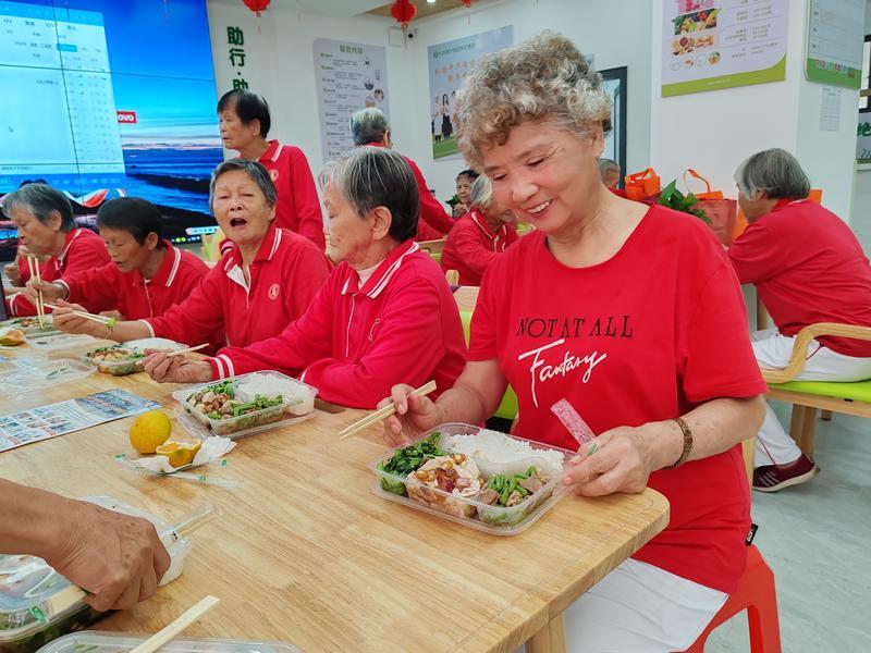 老人在觀華社區長者服務站用餐。 惠州日報記者朱麗婷 通訊員羅陽宣 攝