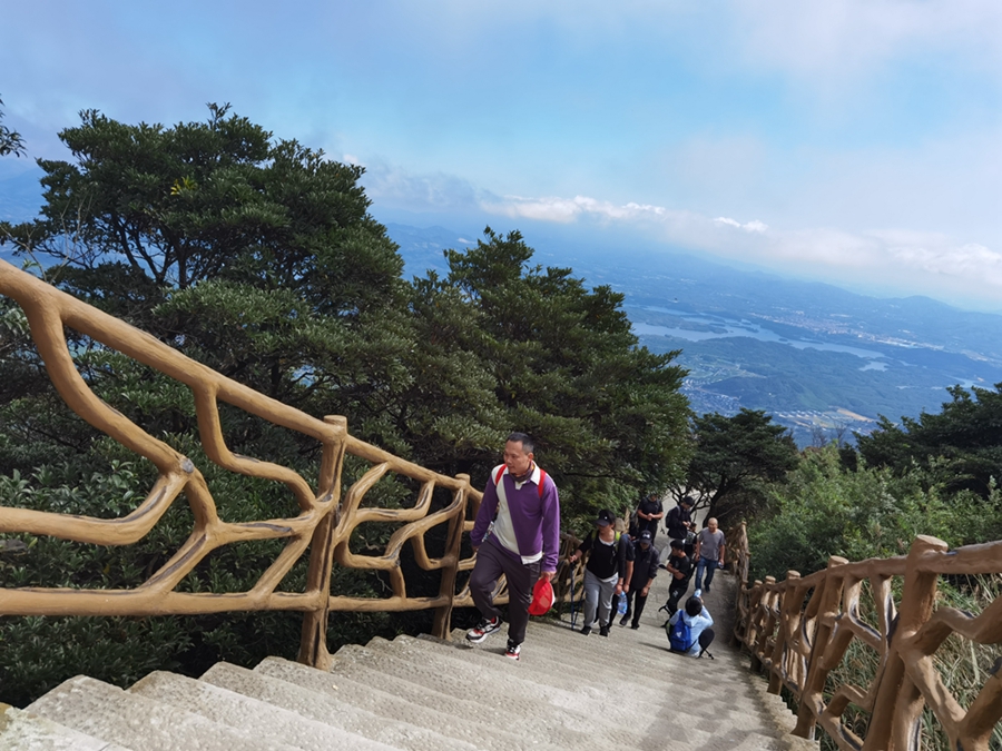 一山有四季,十里不同天。嶺南第一山——羅浮山一山多景,高低不同,各美其美。近期,氣溫適宜,天氣晴朗,不少廣州、深圳、東莞及博羅周邊的驢友和登山愛好者趁著周末登上飛云頂,感受大自然的美好,羅浮山迎來了一撥登山熱。山下陽光明媚,山上則是另一番景象。快到好漢坡時,風夾著絲絲寒意撲面而來,還飄著白白的霧氣,再往上則是云霧繚繞,恍若仙境。到了飛云頂,霧氣籠罩,意境十足。
