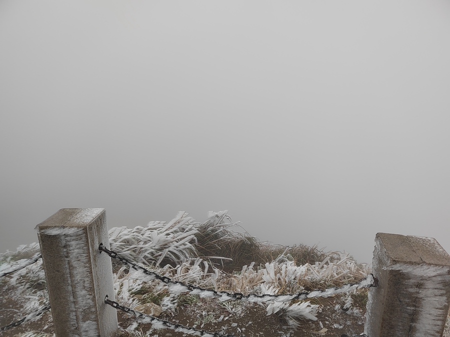 從分水坳到飛云頂的登山道上都是白茫茫的一片。
