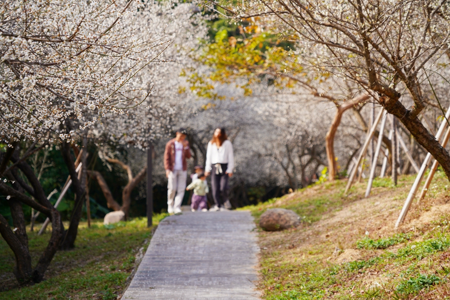 踏入羅浮山景區梅山別夢景點,游客們先被空氣中氤氳的梅香所俘獲。精致的白梅、俏麗的紅梅,一朵朵簇擁著綻放在枝頭,引來蜂蝶直鉆到花蕊中,吮吸最甜的蜜。微風徐來,花枝搖曳,樹下一陣陣花瓣雨,令人心曠神怡。一些游客身著傳統漢服來到梅園中,于梅林下翩翩起舞,成為打卡梅園的一種新形式。