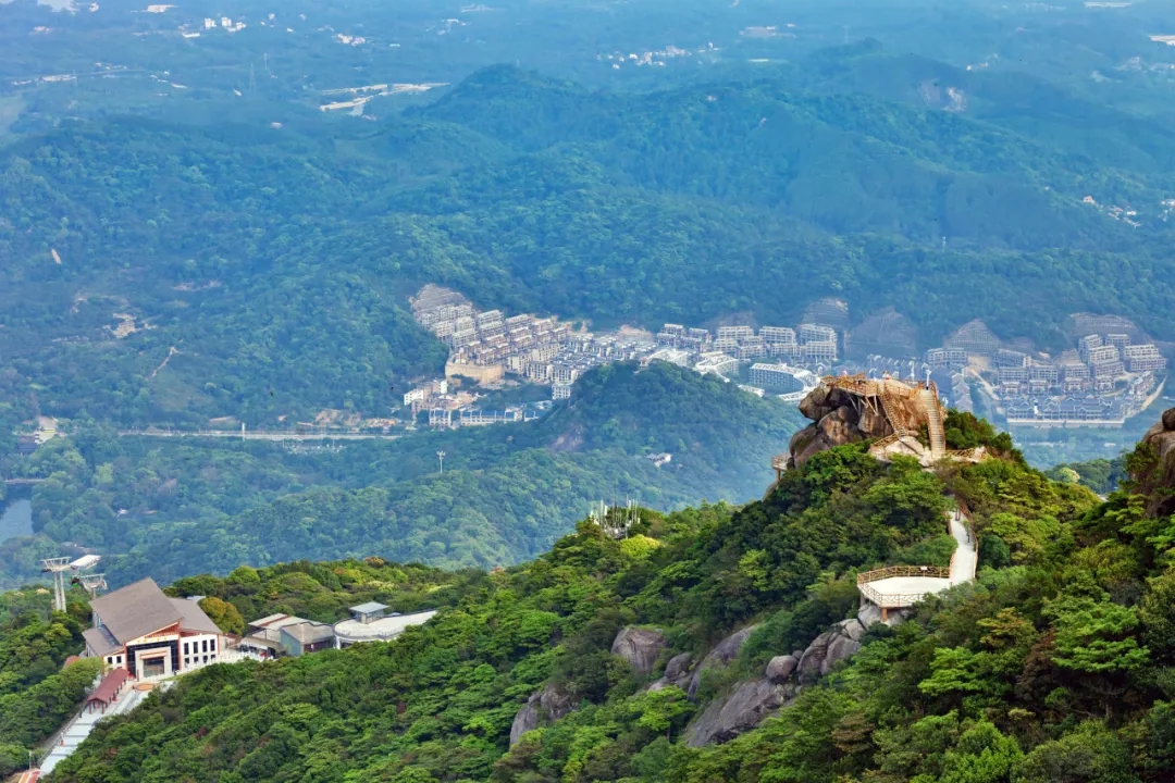 景區大門——白蓮湖——東江縱隊觀光車售票點——索道下站——乘坐索道——索道上站——鷹嘴巖——登山棧道——分水坳——飛云頂