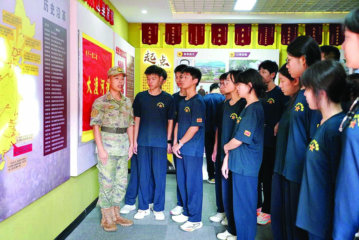 在國防教育中,部隊宣講員為師生講述了部隊歷史,帶領大家參觀了軍史長廊、勵志園、狼牙山五壯士連和大渡河連等地。在觀看歷史圖片、實物展覽過程中,師生們深刻了解了革命隊伍的發展歷程、重要戰役、英雄事跡及紅軍犧牲決勝的精神。