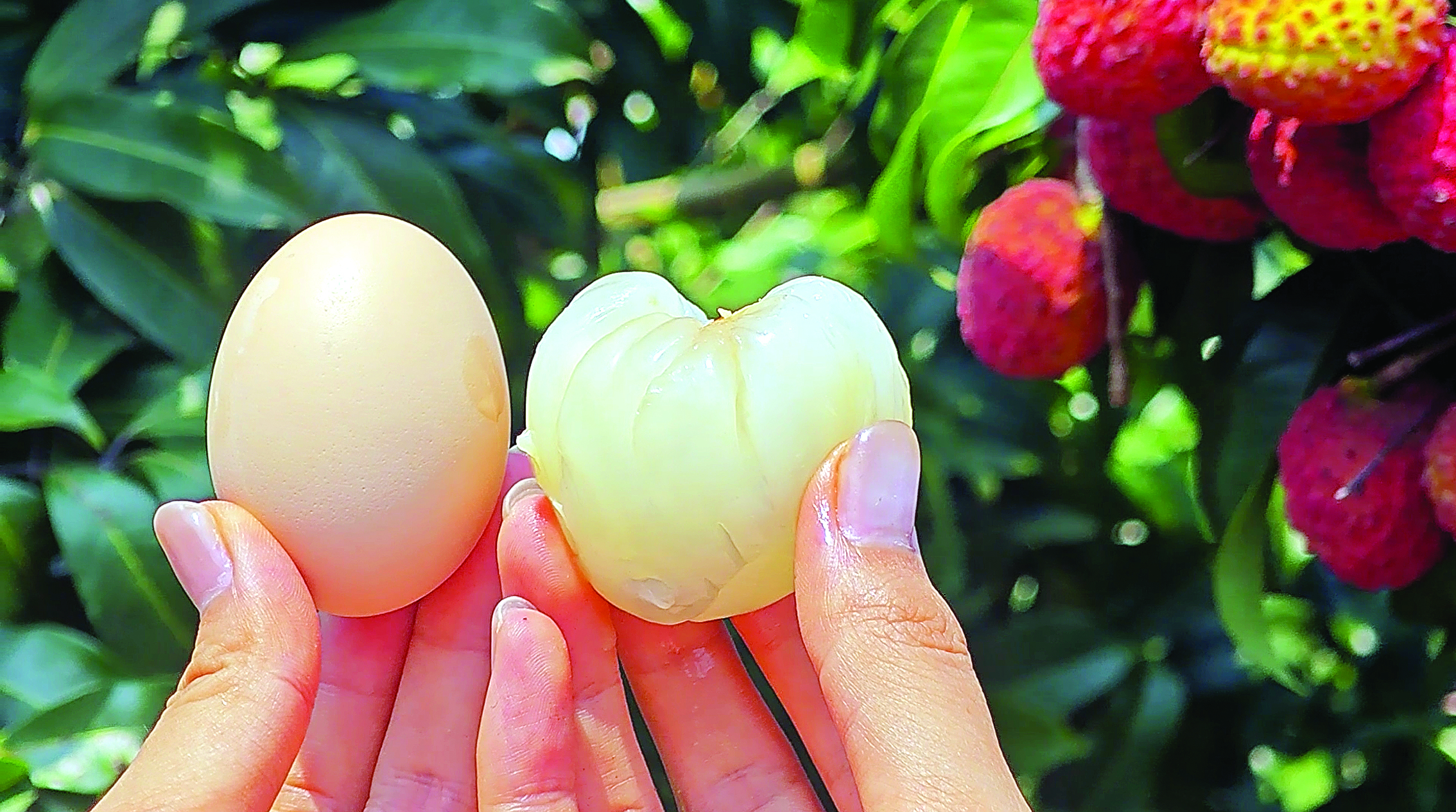 走進合作社的種植區,漫山遍野的荔枝樹枝繁葉茂,枝頭垂掛著簇簇飽滿的荔枝,顆顆渾圓如紅寶石。“你看這顆無核荔枝,表皮的‘縫合線’夠白了,說明已經成熟可以采摘了。”合作社負責人陳偉清隨手摘下一顆雞蛋大小的無核荔枝,剝開后只見果肉晶瑩飽滿,入口爽脆清甜、果香濃郁,讓人回味無窮。