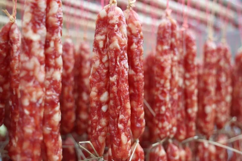 實操體驗環節更是熱鬧非凡。在李師傅的指導下,親子家庭分工協作,捋腸衣、灌肉餡、扎氣孔、綁繩結、定形狀,每一個步驟都做得一絲不茍。指尖翻飛間,一根根形態飽滿的新鮮臘腸逐漸成型。大家一邊操作,一邊交流技巧,感受非遺技藝的獨特魅力。