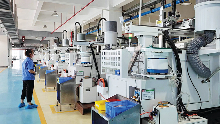 肖輝煌介紹,目前惠州科達利生產車間除了全檢等少部分后期工序需要人工外,產品生產中的各個工序都是采用高精度的自動化設備來完成,生產線自動化程度達40%。較高的自動化水平不僅提高了生產效率,更節約了人力成本。
