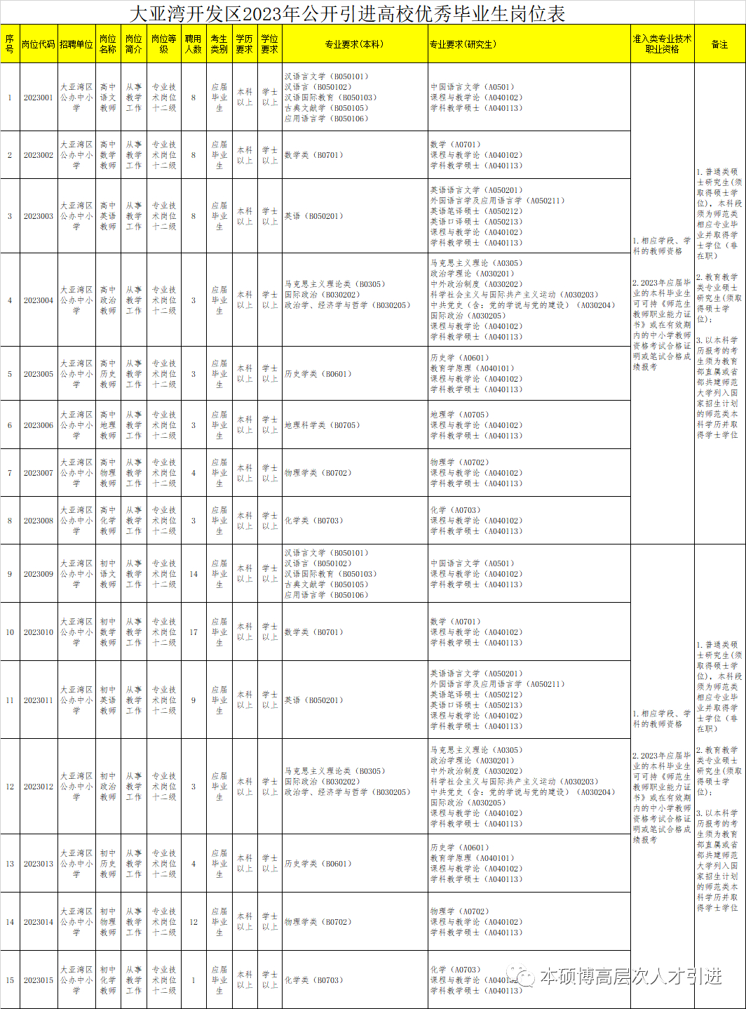 點擊鏈接 :大亞灣開發區2023年公開引進高校優秀畢業生公告