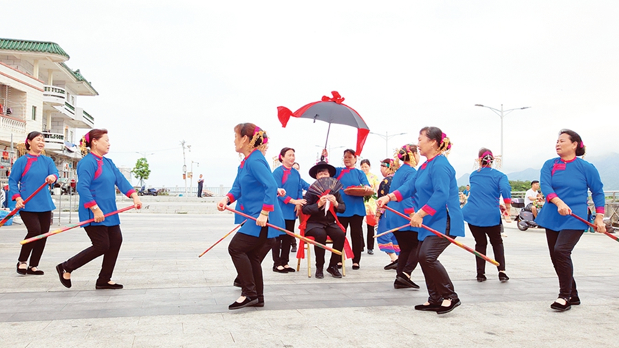 東升村是一個(gè)四面環(huán)海的海島漁村,擁有豐厚的漁家傳統(tǒng)文化,其漁家婚嫁習(xí)俗是廣東省非物質(zhì)文化遺產(chǎn)保護(hù)項(xiàng)目,一年一度的大王爺節(jié)是市級(jí)非物質(zhì)文化遺產(chǎn)項(xiàng)目。近年來,東升村黨支部積極打造東升村特色文化站,組建“東升漁歌歌舞隊(duì)”,啟動(dòng)“東升漁女”漁家文化傳承及創(chuàng)收賦能提升項(xiàng)目,將漁家歌舞表演搬到了網(wǎng)絡(luò)直播間,掀起了一股弘揚(yáng)東升漁家文化的熱潮。東升漁家文化在傳承與創(chuàng)新中煥發(fā)新活力。
