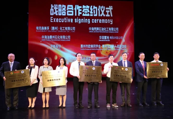 惠州日報訊 (記者歐陽德輝 張宇琪)5月25日上午,惠州大亞灣區外語實驗學校與埃克森美孚(惠州)化工有限公司、中海殼牌石油化工有限公司、中海油惠州石化有限公司、華潤置地粵東片區公司、宇新股份、惠州市歐美同學會·惠州市留學人員聯誼會等企業、組織簽署戰略合作協議。惠州市委統戰部、市委組織部,大亞灣開發區黨工委、管委會有關領導及教育部門負責人見證了簽約儀式。