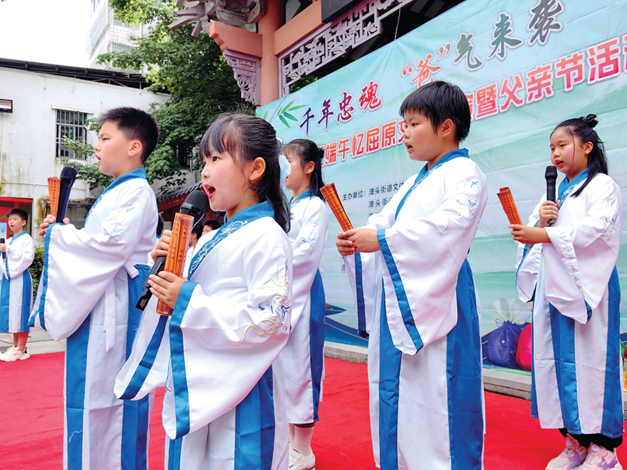 6月18日,一場(chǎng)迎端午憶屈原文化展演暨父親節(jié)活動(dòng)在澳頭公園舉行。活動(dòng)以親子手工拉開序幕,孩子與爸爸們齊心協(xié)力,卷粽葉、扎繩子、包粽子,共享親子時(shí)光,共學(xué)屈原文化。隨后,伴隨著莊重古樸的純音樂,精心排練的話劇把活動(dòng)推向高潮。話劇表演人員用精湛的表演生動(dòng)還原了屈原的愛國(guó)情操。隨后,一陣稚嫩悅耳的朗誦聲傳來,一位位身穿漢服的青少年逐字逐句地吟誦著屈原名篇《離騷》,配合著生動(dòng)的手勢(shì)、深情的眼神,極富感染力。活動(dòng)還穿插了防溺水安全教育、全民反詐宣傳環(huán)節(jié),通過派發(fā)相關(guān)宣傳資料,引導(dǎo)大家提高自身安全意識(shí)和自救自護(hù)能力。