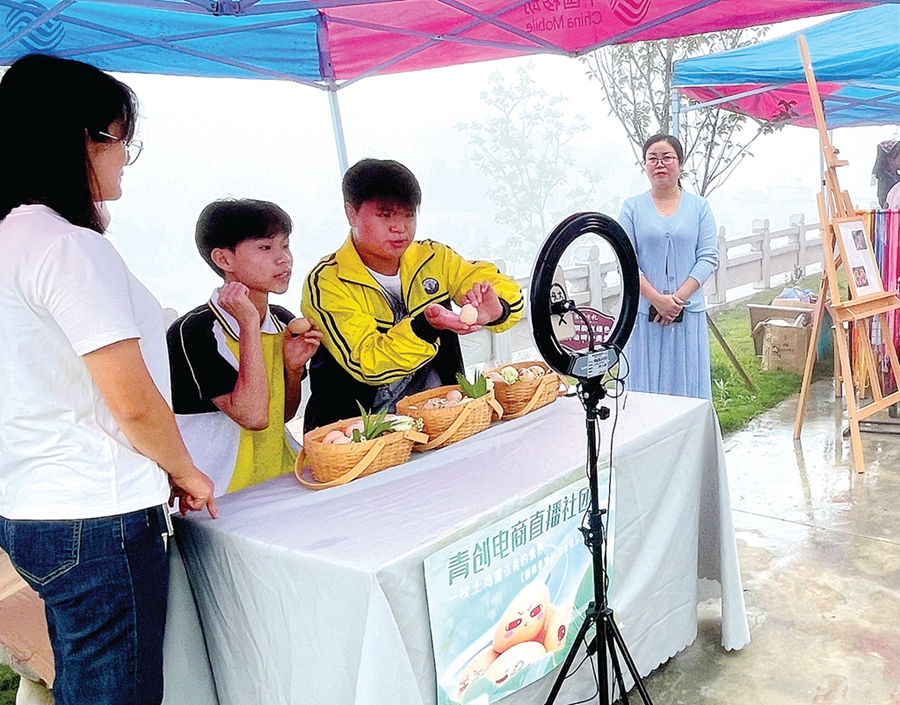 學(xué)員劉帥平(中)在直播推薦晴隆農(nóng)產(chǎn)品。