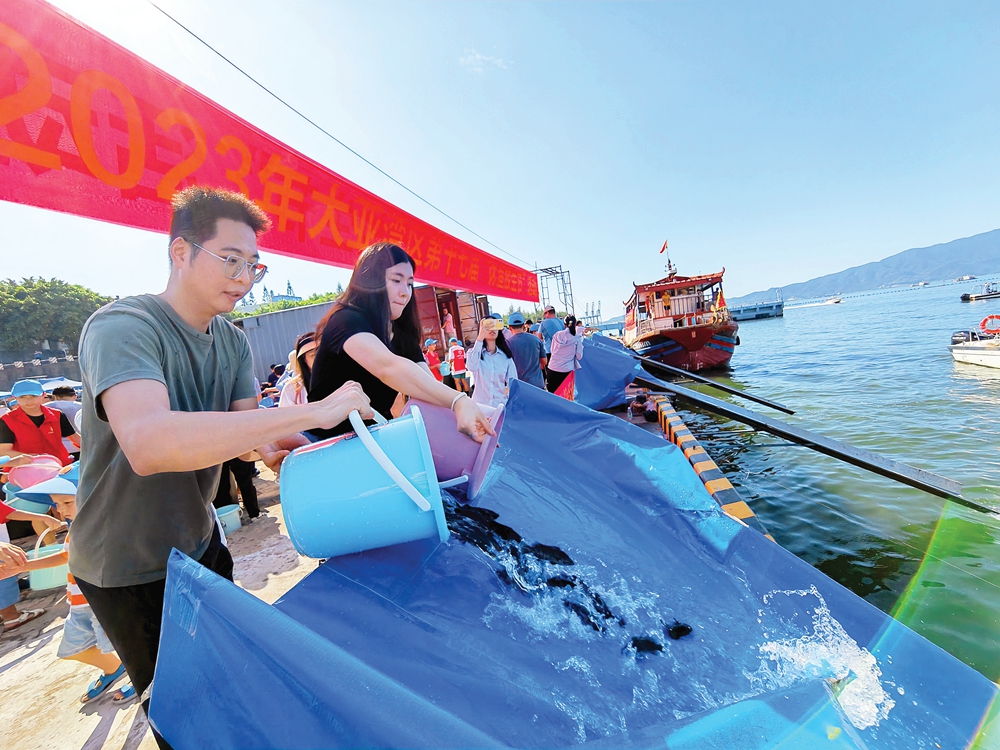 魚苗放流大海。惠州日報記者匡湘鄂 通訊員陳志敏 攝