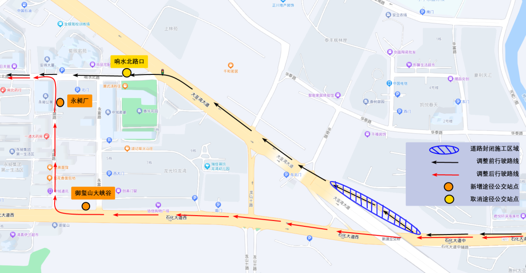 由于石化大道右轉至