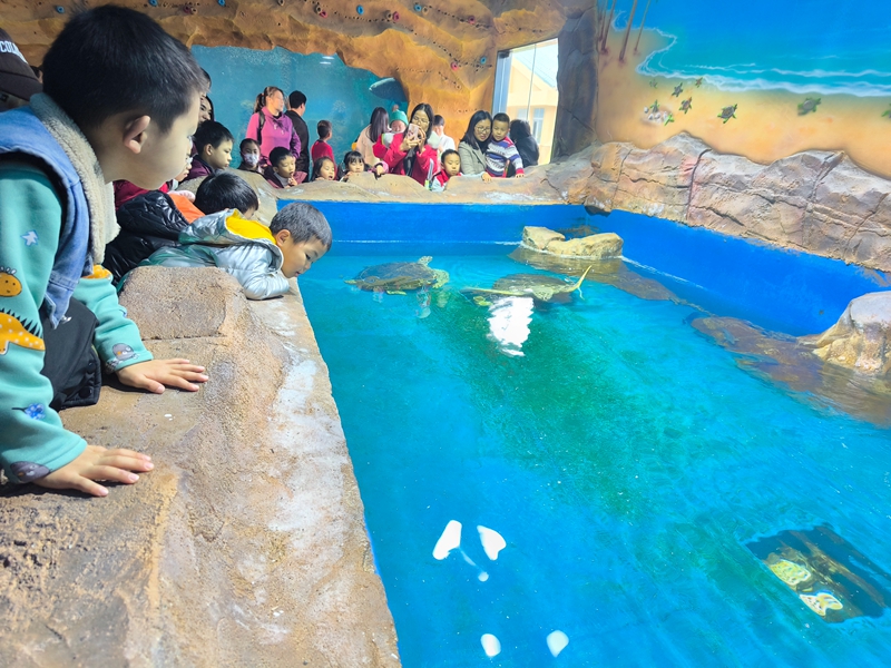 親子家庭參觀海洋科普館。 惠州日報記者曾靜妍 通訊員李愛芳 攝