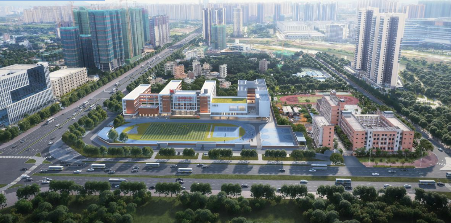 自在城九年一貫制學校是西區(qū)街道自在城小區(qū)的配建學校,項目規(guī)劃按42個小學教學班級、21個初中教學班級建設,共提供1890個公辦小學學位和1050個公辦初中學位。目前,該校小學教學樓、食堂主體結(jié)構(gòu)已封頂,初中教學樓已完成樁基礎施工,承臺基礎已完成開挖;宿舍樓頂層正在施工中,計劃今年9月交付使用。