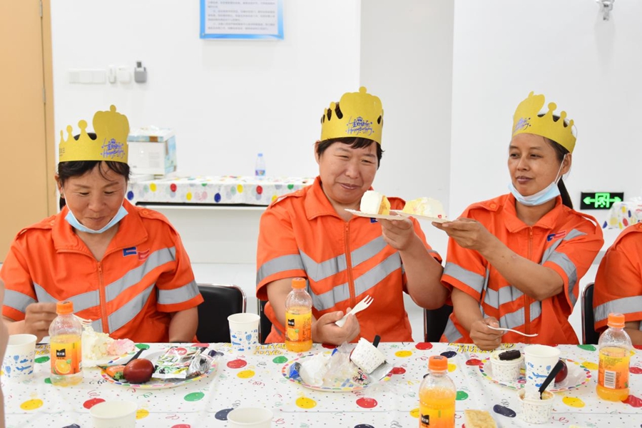 戶外勞動者過集體生日