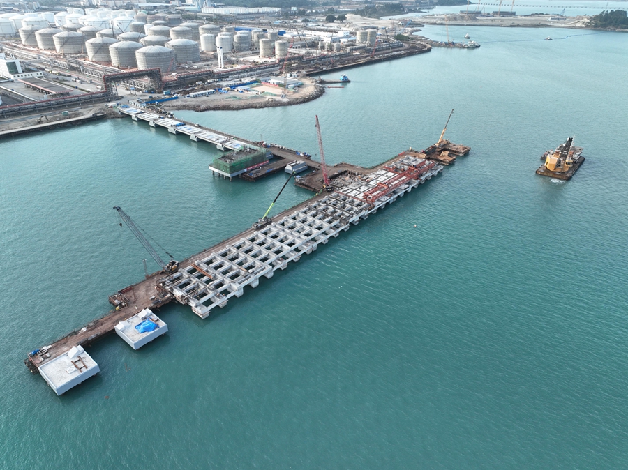 惠州港5萬噸級液化烴碼頭加緊建設。本版圖片由大亞灣區新聞中心提供