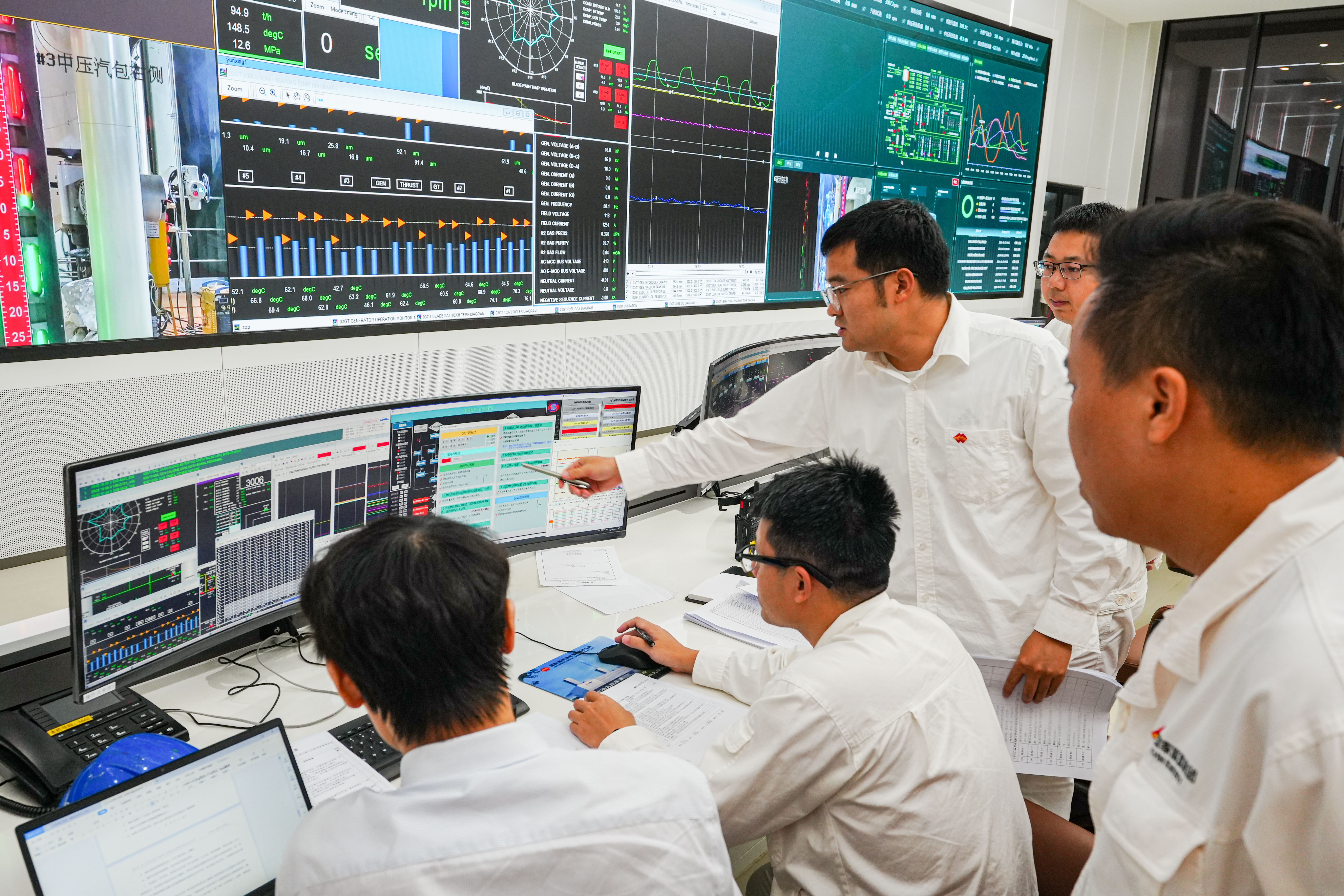 國能惠州電廠二期技術人員在仔細檢查設備運行情況。 惠州日報記者曾靜妍 通訊員王曉恒 張超 攝