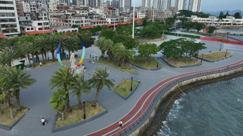濱海藝術廊道是對霞涌全長約10公里的濱海岸線綠道進行提升改造,從西到東依次貫穿泡泡海、海韻廣場、千帆閣、螺島、黃金海岸、烏山頭、小徑灣。圍繞親海、活力、時尚,建設騎行道、步行道及沿線驛站、觀景平臺等,全線實施慢行道藝術劃線。