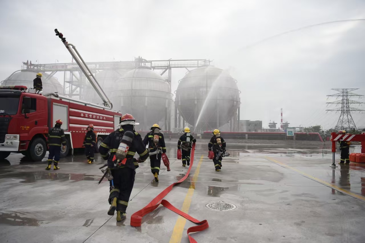 這抹“火焰藍”不僅是石化園區的守護者,更是企業發展的堅強后盾。大亞灣開發區消防救援大隊與園區企業緊密協作,對33家石化企業、974個儲罐、158條道路和36條消防管網進行改造,成立了2300余人的工藝處置隊,提升了園區的整體安全水平。