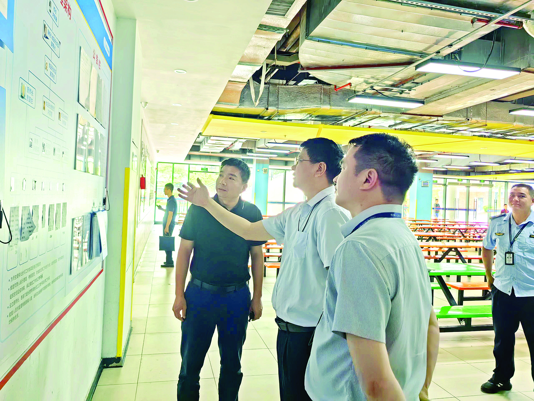 區市場監管局工作人員對高考考點校園食堂開展食品安全檢查。