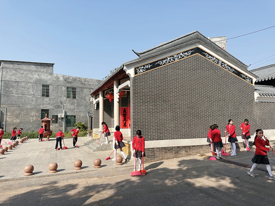 在當一次小標兵實踐環節,學生在校園周邊開展衛生清潔活動。 惠州日報記者鄧惠婷 通訊員黎華容 周正立 攝