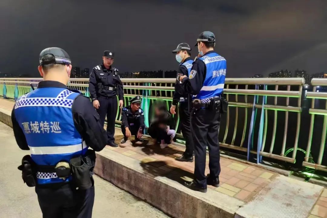 經(jīng)過(guò)不斷搜尋,民警最終在隆生大橋江北往水口方向的邊上發(fā)現(xiàn)該名輕生女子。“當(dāng)時(shí),她蹲坐在欄桿邊大聲哭泣,情緒已經(jīng)失控。”據(jù)惠城公安特巡隊(duì)隊(duì)員楊艷龍描述,見(jiàn)此情況,隊(duì)員一邊默契形成包圍圈,以應(yīng)對(duì)可能發(fā)生的突發(fā)情況,一邊勸慰分散該女子注意力。“就現(xiàn)在,沖過(guò)去!”抓準(zhǔn)最佳救援時(shí)機(jī),趁女子不注意,民警箭步上前迅速將其控制,帶回安全區(qū)域。