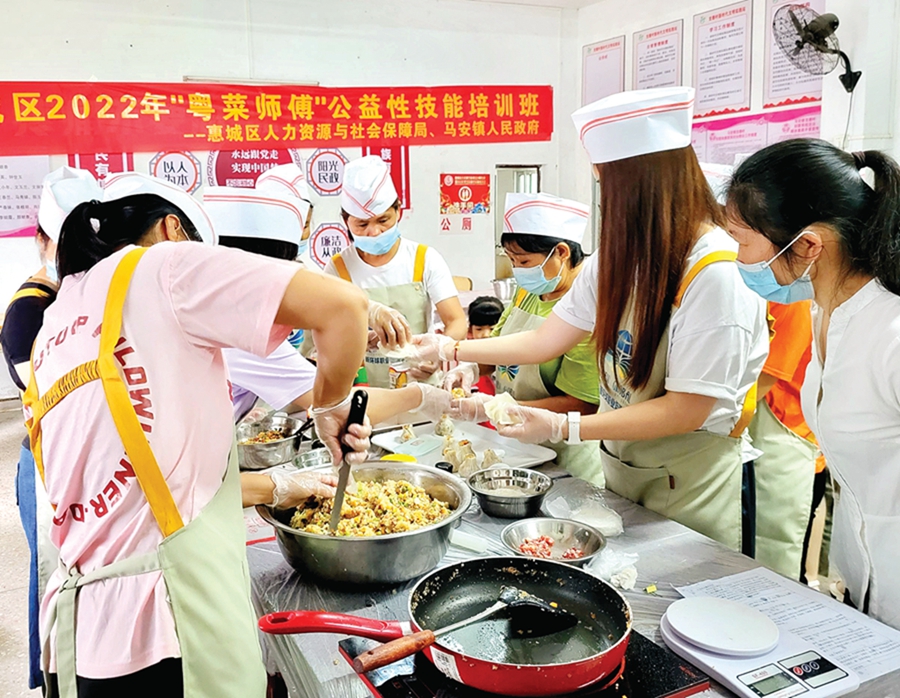 據統計,2022年,共培訓“粵菜師傅”639人次;區技工學校已與35家企業簽訂合作協議,共同培養學員844名,培訓“農村電商”學員560人次;“南粵家政”項目共培訓人員1430人次。
