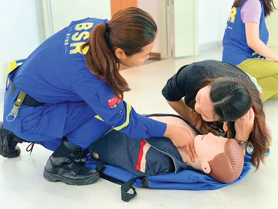 本次活動(dòng)以消防安全、防災(zāi)減災(zāi)、醫(yī)療救護(hù)為科普重點(diǎn),由藍(lán)天救援隊(duì)宣講組兩位講師分批講解,通過(guò)真實(shí)案例分析、PPT教學(xué)等形式,為大家科普消防器材的使用、避險(xiǎn)逃生、心肺復(fù)蘇(CPR)操作及成人、嬰兒氣道梗阻自救互救的方法等應(yīng)急知識(shí)。講座結(jié)束后,現(xiàn)場(chǎng)還安排了專業(yè)人員分組對(duì)突發(fā)情況進(jìn)行模擬練習(xí)。學(xué)員們積極參與學(xué)習(xí),在專業(yè)人員的指導(dǎo)下,很快掌握了多種應(yīng)急處理方法,受益匪淺。