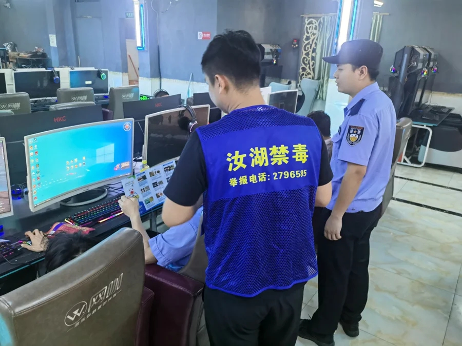 汝湖鎮禁毒辦工作人員在網吧內開展禁毒宣傳。