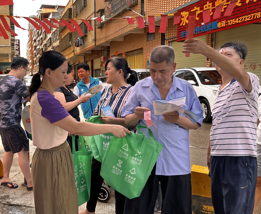 垃圾分類有獎競答游戲吸引居民踴躍參與;葜萑請笥浾吲砑t霞 通訊員曾婷 攝