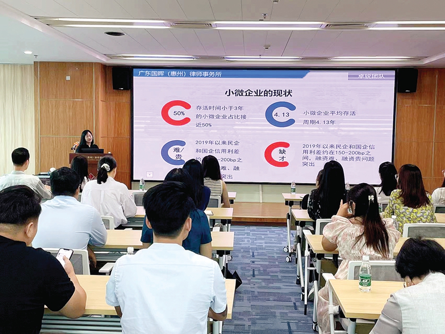 惠州日報訊 (記者彭紅霞 通訊員陳晨芳)日前,有企業向江北街道CBD樓宇企業服務站提出,經營過程中遇到一些法律問題需要咨詢。針對企業的需求,服務站工作人員通過走訪調研、分析研判,聯系有相關需求的企業30余家,特邀廣東國暉(惠州)律師事務所專職律師為大家答疑解惑。9月8日上午,一場以“小微企業如何避免常見法律糾紛”為主題的法律知識講座在華貿大廈舉行。