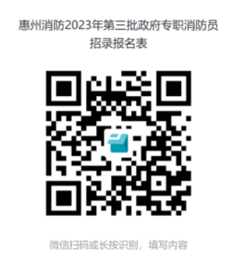 資料準備好后請掃描以下二維碼填報:(掃碼后應聘單位請選擇一一惠城區消防救援大隊)