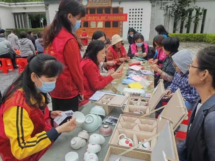 花邊嶺社區開展“九九重陽 老幼同樂”文藝志愿服務活動。民間藝術家們演奏了古箏、陶笛、二胡等,展示了民間藝術手工作品泥塑、彩瓷、團扇等。“回家”黨員擔任活動的秩序員、宣傳員、引導員,向居民解說傳統文化藝術作品,引導居民有序觀看表演,宣傳中國傳統文化知識、平安惠城知識等。