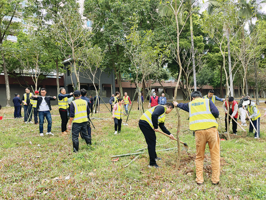 活動中,大家分工合作,揮鋤挖坑、培土壓實、提水澆灌、加固樹苗,以實際行動踐行“綠水青山就是金山銀山”的發展理念,為建設宜居宜業和美社區貢獻綠美力量。
