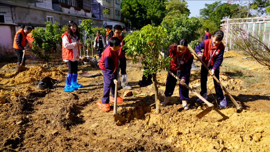 少先隊員們種下“紅領巾林”。 惠州日報記者葉文青 通訊員李嘉瑋 攝