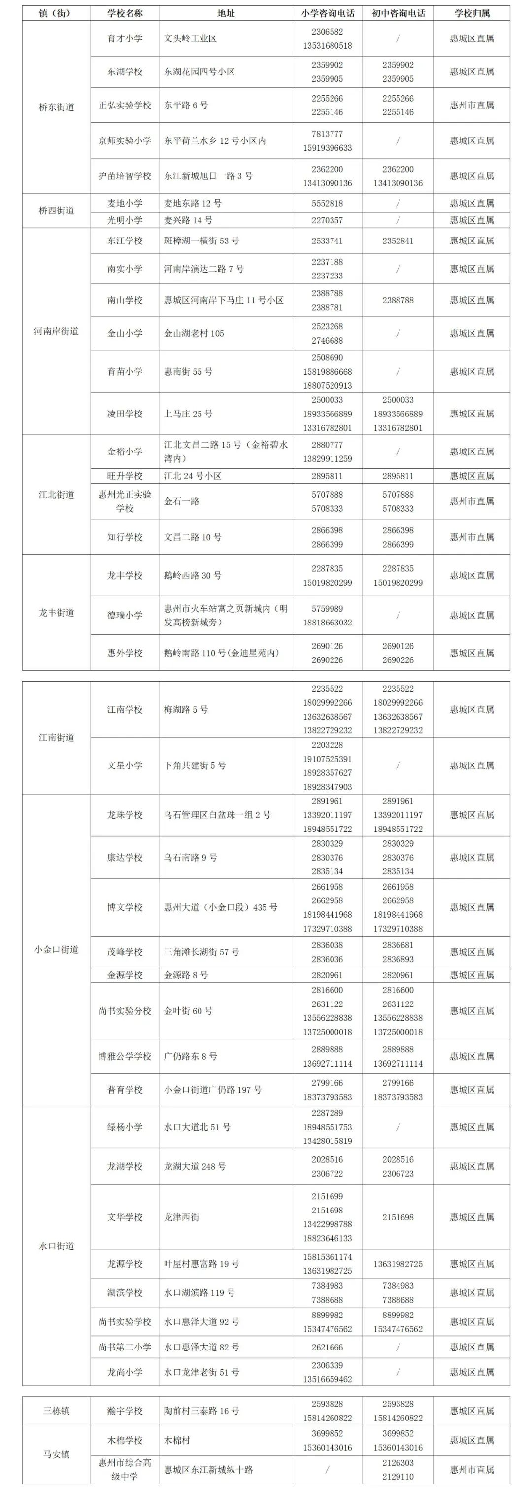 (一)民辦學(xué)校招生咨詢電話請下拉查看《惠城區(qū)屬及市直民辦學(xué)校招生電話表》。
