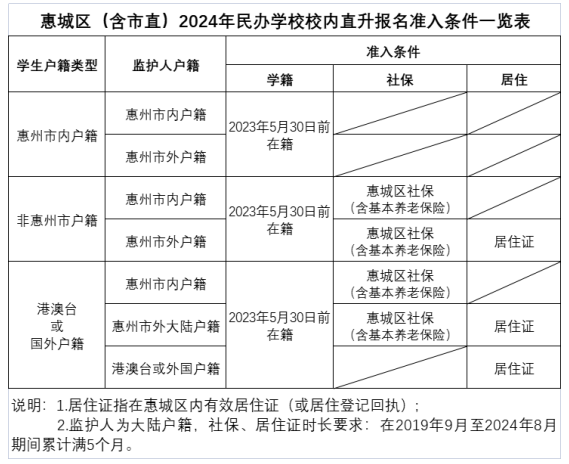 根據(jù)惠州市教育局《關(guān)于做好2023年義務(wù)教育招生入學(xué)工作的通知》等文件要求,具體準(zhǔn)入條件做如下說明: