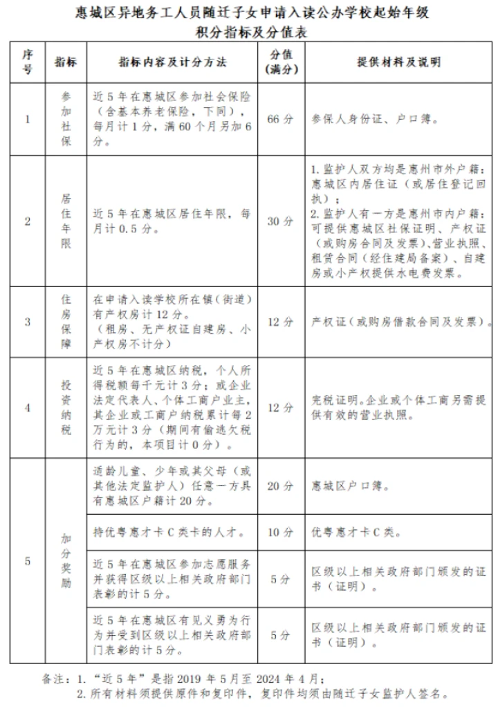 關(guān)于2024年惠城區(qū)義務(wù)教育階段公辦學(xué)校起始年級積分入學(xué)條件及申請流程公告