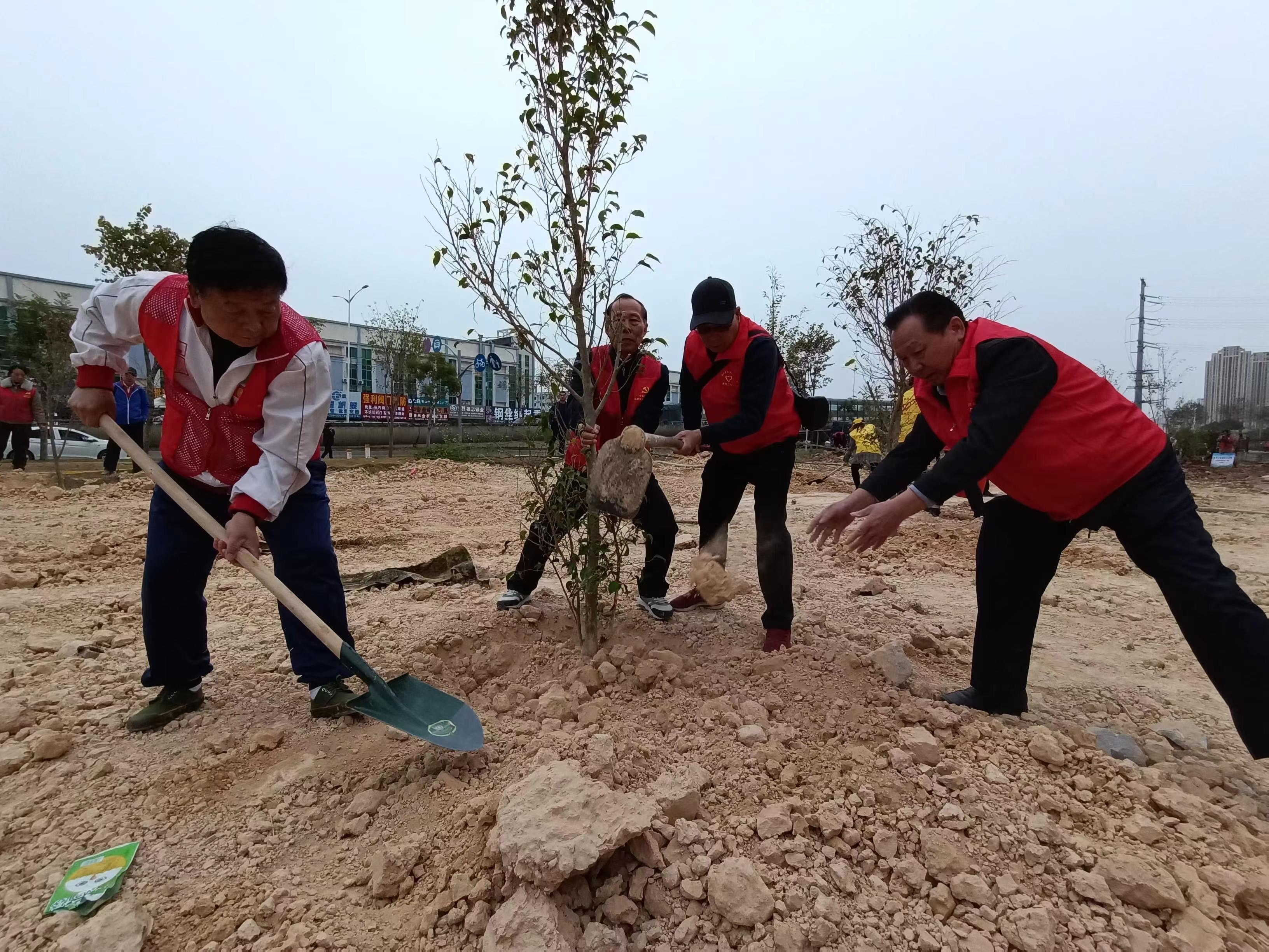 日前,在惠城區小金口金龍大道一側舉行的“綠美建設 共植共管”植樹活動現場,活躍著一群志愿者,其中一批銀發老者格外引人注目,有的揮鋤挖坑,有的扶正樹苗,有的鏟土回填,干得熱火朝天,不亦樂乎。他們是來自小金口街道鐵路退休黨委的“銀齡志愿服務隊”的老黨員。