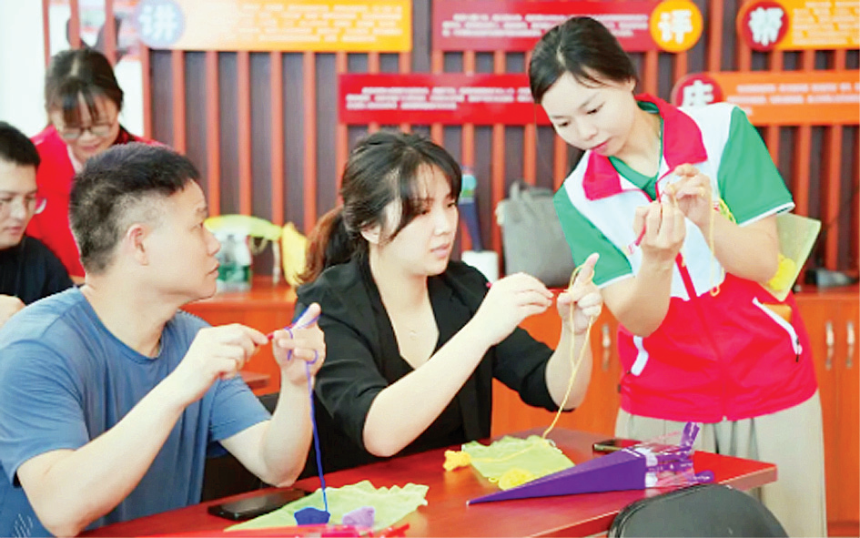 社區居民在老師的指導下學習手工編織。 惠州日報記者謝菁菁 通訊員謝意 攝