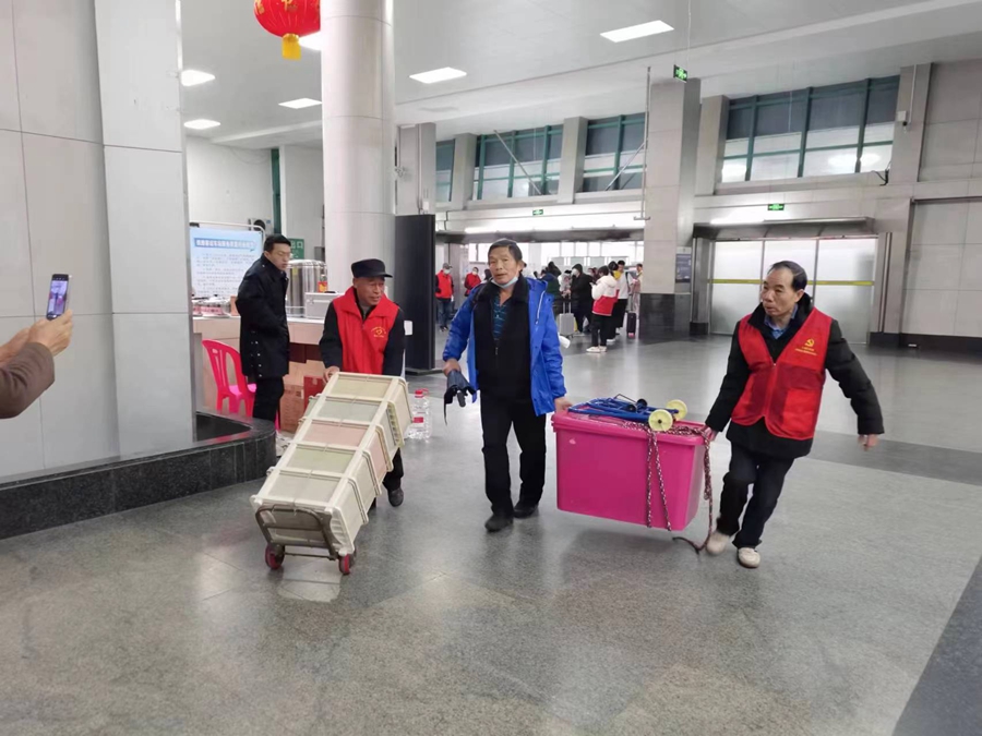 銀齡志愿服務隊隊員助力春運(資料圖片)。