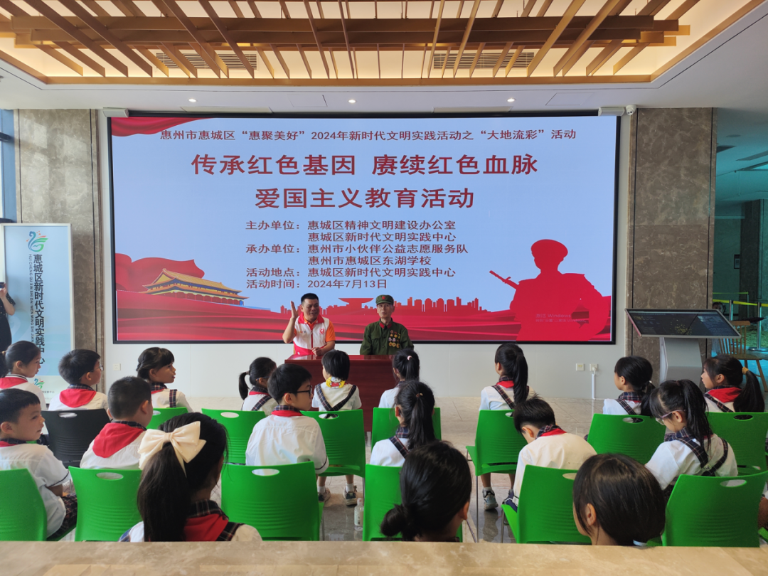 為傳承紅色基因,弘揚革命精神。近日,惠城區精神文明建設辦公室、惠城區新時代文明實踐中心、惠州市惠城區東湖學校聯合小伙伴公益,舉辦惠州市惠城區“惠聚美好”2024年新時代文明實踐活動之“大地流彩”——“傳承紅色基因 賡續紅色血脈”愛國主義教育活動,活動旨在銘記歷史、緬懷先烈,激發青少年的愛國情懷,30多名青少年參加活動。