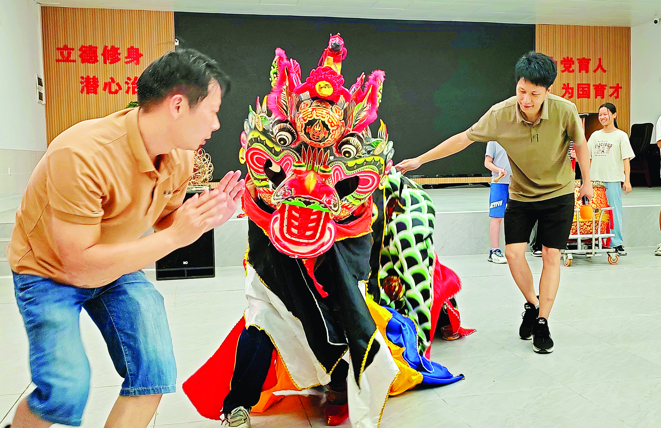 教練教孩子們舞麒麟。惠州日報記者彭紅霞 通訊員黃美琳 攝
