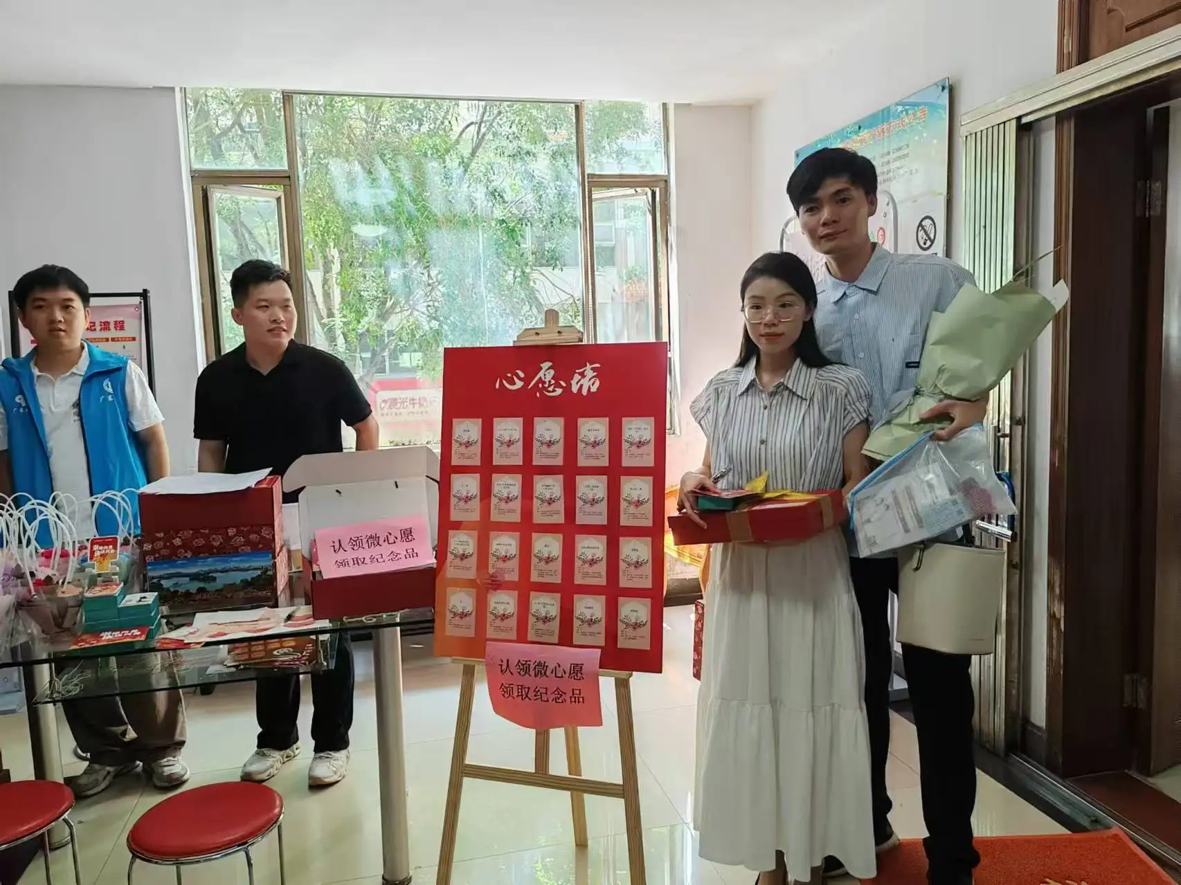 9時30分,記者來到了惠城區(qū)民政局婚姻登記處,現(xiàn)場已有不少正在辦理登記手續(xù)的新人。市民政局工作人員、社工在現(xiàn)場擺起了小攤,支起“微心愿”愛心墻,把慈善文化融入婚姻登記服務過程。民政部門準備寓意“一輩子”的喜慶杯子、花藝小品等小禮物,每對參與的新人在捐贈后會收到一份捐贈禮品。