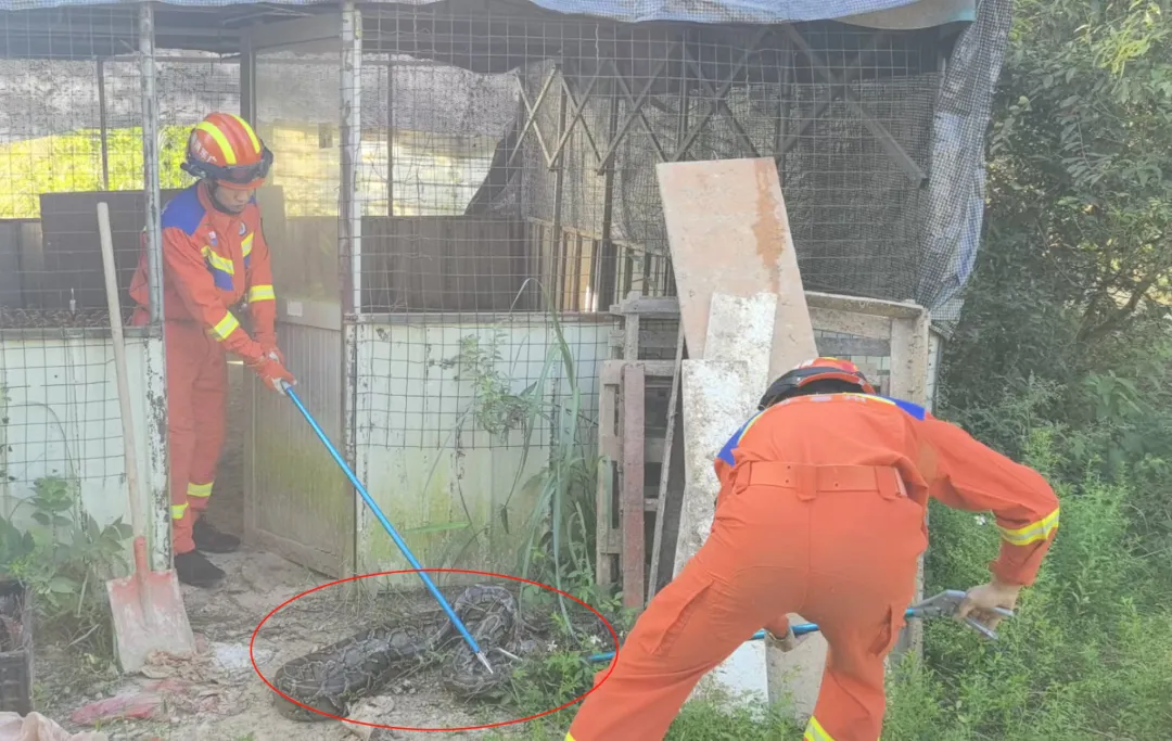 惠城區(qū)冷水坑街道一村民家中有蟒蛇出沒