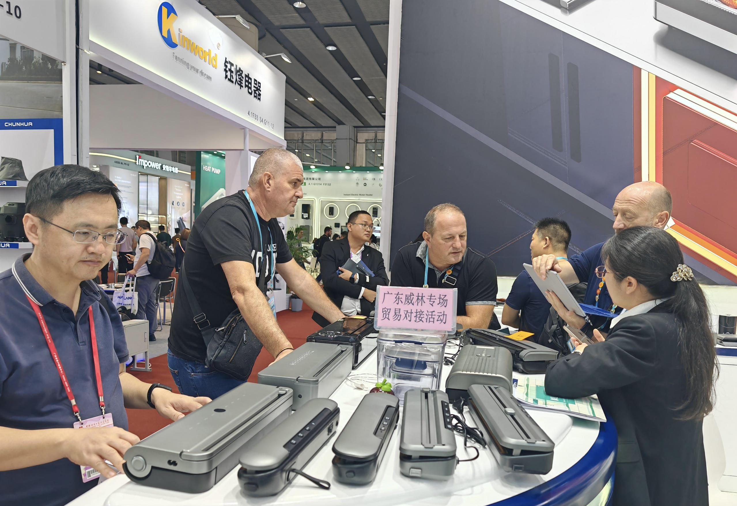 廣東威林科技股份有限公司展會負責人介紹,威林科技在此屆廣交會展出的主要是廚房電熱、食物真空包裝、制冰系列、烹飪系列(比如電磁爐、制冰機)等四大系列的智能家電產品,總共上百款產品。