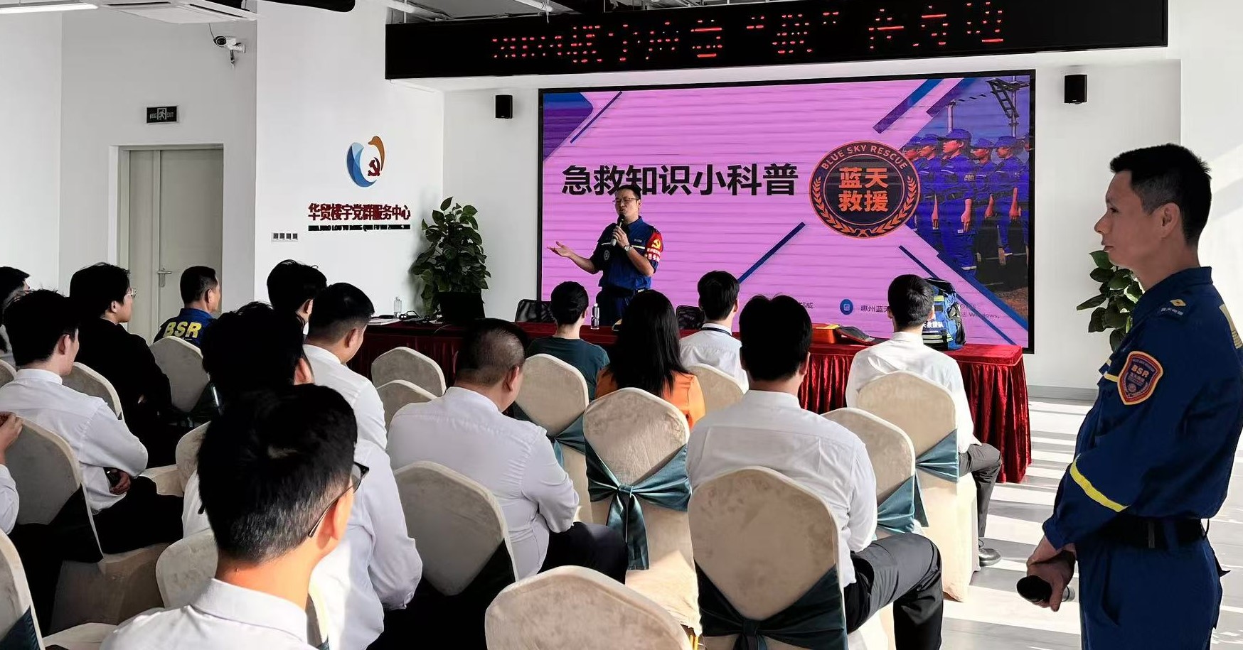 在收集樓宇企業員工的需求后,日前,服務站聯合惠州市藍天救援隊在華貿大廈組織開展了主題為“2024樓宇應急‘救’在身邊”的應急知識專題科普培訓,吸引了60余名企業員工參加。