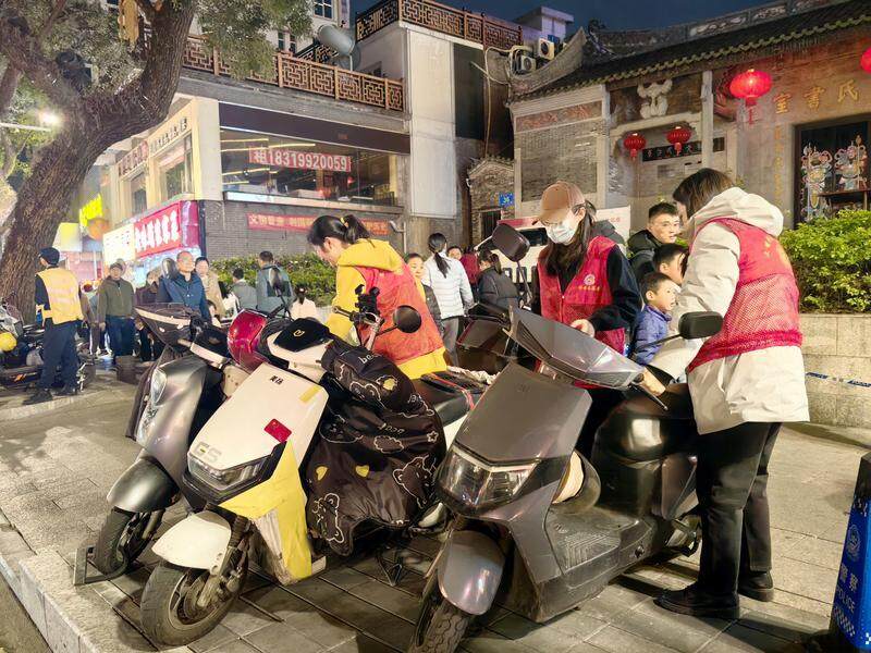 橋西街道志愿服務(wù)隊(duì)伍也積極投身其中,成為保障春節(jié)安全的重要力量。志愿者們分布在各個點(diǎn)位,仔細(xì)留意每一處細(xì)節(jié)。面對隨意占道經(jīng)營的流動攤販,他們耐心講解規(guī)定,用真誠的態(tài)度讓小販理解配合,恢復(fù)景區(qū)周邊的整潔有序;看到亂停亂放影響市容和通行的電動車,工作人員依法依規(guī)將車輛搬運(yùn)至指定區(qū)域擺放整齊。